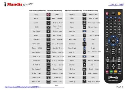 Ein Dokument ist enthalten, um die Verwendung der neuen Fernbedienung zu erleichtern, indem es die Tastenbelegung zeigt.