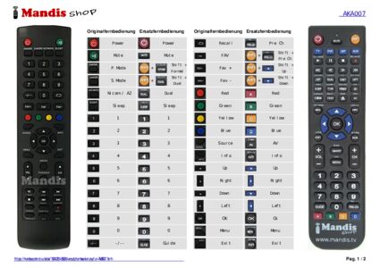 Diese Fernbedienung ersetzt Ihre AKA007 in vollem Umfang und bietet alle Funktionen des Originals.