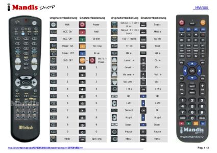 Diese Fernbedienung ersetzt die meisten Funktionen Ihres MA6300. Es ist keine Universalfernbedienung, sondern eine Kopie mit den meisten Tasten und Funktionen Ihres Originals.
