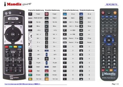 Ein Dokument ist enthalten, um die Verwendung der neuen Fernbedienung zu erleichtern, indem es die Tastenbelegung zeigt.