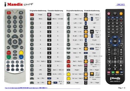 Ein Dokument ist enthalten, um die Verwendung der neuen Fernbedienung zu erleichtern, indem es die Tastenbelegung zeigt.