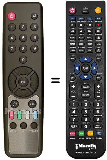 Fernbedienung, die das Original und die Gesamtheit seiner Funktionen, vollständig ersetzt.