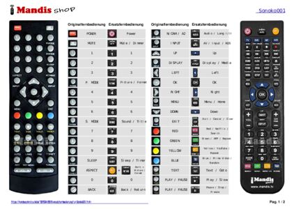 Ein Dokument ist enthalten, um die Verwendung der neuen Fernbedienung zu erleichtern, indem es die Tastenbelegung zeigt.
