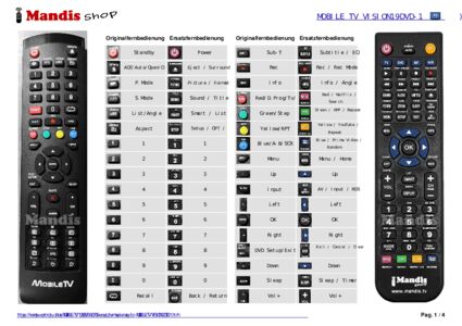 Ein Dokument ist enthalten, um die Verwendung der neuen Fernbedienung zu erleichtern, indem es die Tastenbelegung zeigt.