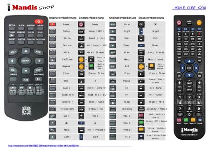 Diese Fernbedienung ersetzt Ihre Movie Cube (K120) in vollem Umfang und bietet alle Funktionen des Originals.