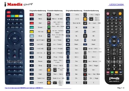 Ein Dokument ist enthalten, um die Verwendung der neuen Fernbedienung zu erleichtern, indem es die Tastenbelegung zeigt.