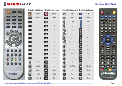 Ein Dokument ist enthalten, um die Verwendung der neuen Fernbedienung zu erleichtern, indem es die Tastenbelegung zeigt.