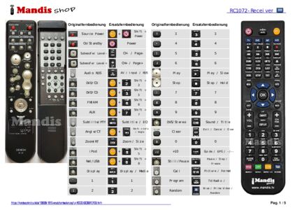 Diese Fernbedienung ersetzt Ihre RC1072 (00D3991101109) in vollem Umfang und bietet alle Funktionen des Originals.