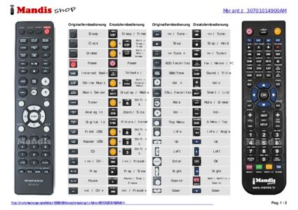 Ein Dokument ist enthalten, um die Verwendung der neuen Fernbedienung zu erleichtern, indem es die Tastenbelegung zeigt.
