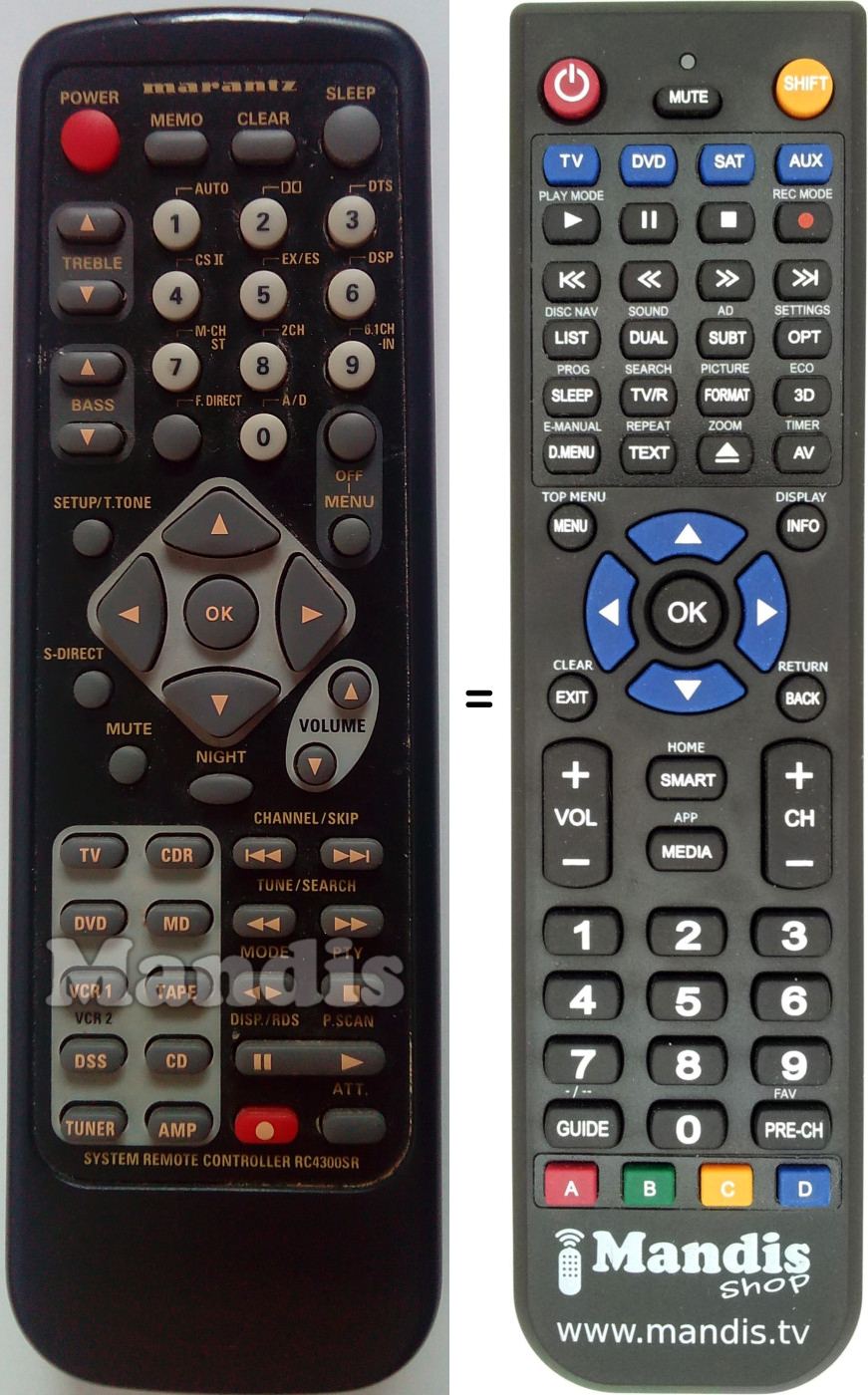 Diese Fernbedienung ersetzt Ihre RC4300SR in vollem Umfang und bietet alle Funktionen des Originals.