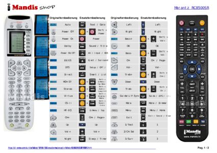 Diese Fernbedienung ersetzt Ihre RC-8500SR (00MZK11BW0010) in vollem Umfang und bietet alle Funktionen des Originals.