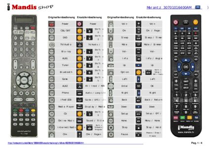 Ein Dokument ist enthalten, um die Verwendung der neuen Fernbedienung zu erleichtern, indem es die Tastenbelegung zeigt.