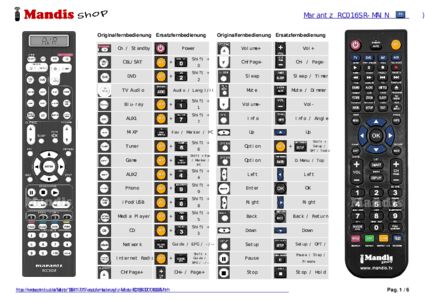 Ein Dokument ist enthalten, um die Verwendung der neuen Fernbedienung zu erleichtern, indem es die Tastenbelegung zeigt.
