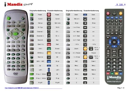 Ein Dokument ist enthalten, um die Verwendung der neuen Fernbedienung zu erleichtern, indem es die Tastenbelegung zeigt.