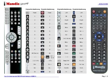 Ein Dokument ist enthalten, um die Verwendung der neuen Fernbedienung zu erleichtern, indem es die Tastenbelegung zeigt.
