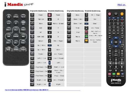 Ein Dokument ist enthalten, um die Verwendung der neuen Fernbedienung zu erleichtern, indem es die Tastenbelegung zeigt.