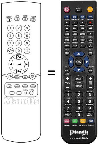 Fernbedienung, die das Original und die Gesamtheit seiner Funktionen, vollständig ersetzt. Es handelt sich jedoch nicht um eine Universalfernbedienung sondern um eine Fernbedienung die das Original ersetzt. Sie erhalten eine nach Einlegen der Batterien sofort einsatzbereite Fernbedienung. Jegliches Programmieren entfällt. Wir geben umfassende Garantie dafür, dass diese Fernbedienung alle Funktionen der Originalfernbedienung erfüllt.