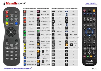 Ein Dokument ist enthalten, um die Verwendung der neuen Fernbedienung zu erleichtern, indem es die Tastenbelegung zeigt.