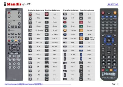 Diese Fernbedienung ersetzt Ihre RC-002 (RP5527ME) in vollem Umfang und bietet alle Funktionen des Originals.