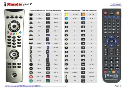 Ein Dokument ist enthalten, um die Verwendung der neuen Fernbedienung zu erleichtern, indem es die Tastenbelegung zeigt.
