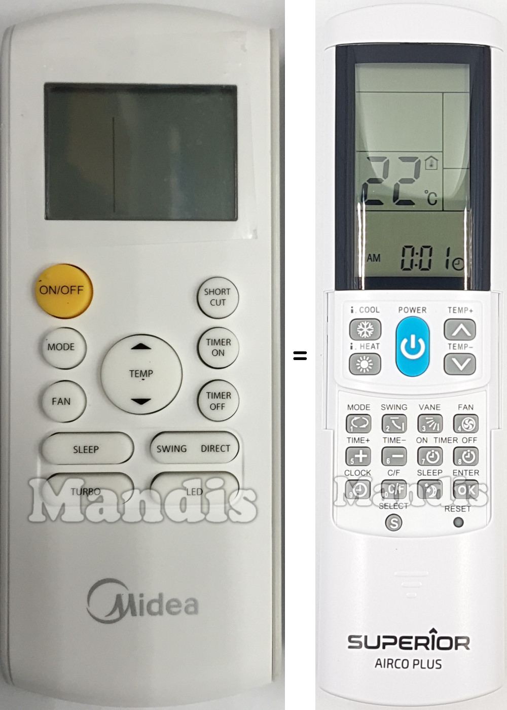 Home > Marken Klimaanlagen > Übersicht der Fernbedienungen für Klimaanlagen der Marke Midea > Universalfernbedienung MIDEA Aircoplus (42530)
