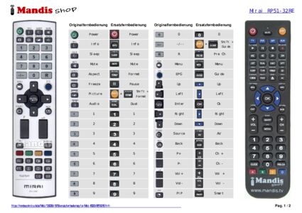 Ein Dokument ist enthalten, um die Verwendung der neuen Fernbedienung zu erleichtern, indem es die Tastenbelegung zeigt.