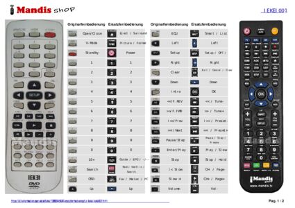 Ein Dokument ist enthalten, um die Verwendung der neuen Fernbedienung zu erleichtern, indem es die Tastenbelegung zeigt.