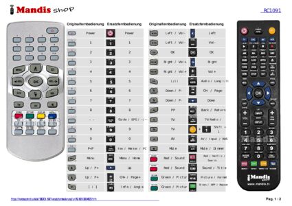 Ein Dokument ist enthalten, um die Verwendung der neuen Fernbedienung zu erleichtern, indem es die Tastenbelegung zeigt.