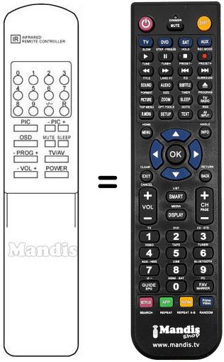 Fernbedienung, die das Original und die Gesamtheit seiner Funktionen, vollständig ersetzt. Es handelt sich jedoch nicht um eine Universalfernbedienung sondern um eine Fernbedienung die das Original ersetzt. Sie erhalten eine nach Einlegen der Batterien sofort einsatzbereite Fernbedienung. Jegliches Programmieren entfällt. Wir geben umfassende Garantie dafür, dass diese Fernbedienung alle Funktionen der Originalfernbedienung erfüllt.