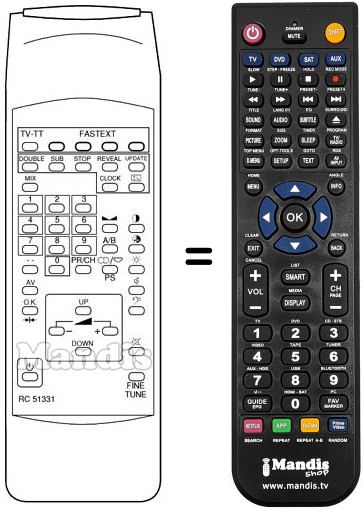 Die Fernbedienung ersetzt das Original RC 51331 in der Gesamtheit seiner Funktionen.