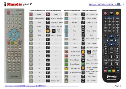 Ein Dokument ist enthalten, um die Verwendung der neuen Fernbedienung zu erleichtern, indem es die Tastenbelegung zeigt.