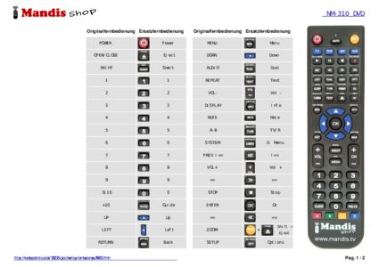 Diese Fernbedienung ersetzt Ihre NM-310 in vollem Umfang und bietet alle Funktionen des Originals.