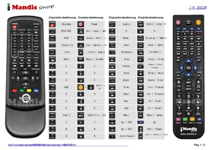 Ein Dokument ist enthalten, um die Verwendung der neuen Fernbedienung zu erleichtern, indem es die Tastenbelegung zeigt.