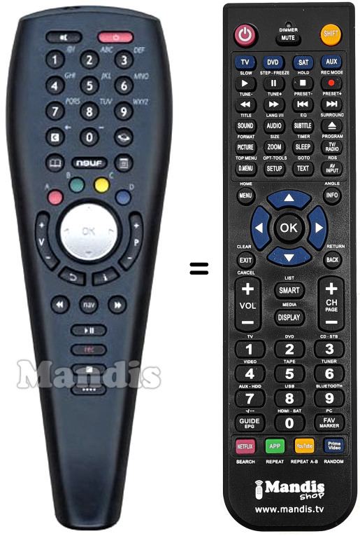 Fernbedienung, die das Original und die Gesamtheit seiner Funktionen, vollständig ersetzt. Es handelt sich jedoch nicht um eine Universalfernbedienung sondern um eine Fernbedienung die das Original ersetzt. Sie erhalten eine nach Einlegen der Batterien sofort einsatzbereite Fernbedienung. Jegliches Programmieren entfällt. Wir geben umfassende Garantie dafür, dass diese Fernbedienung alle Funktionen der Originalfernbedienung erfüllt.