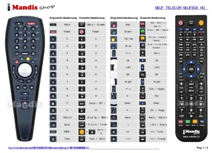 Ein Dokument ist enthalten, um die Verwendung der neuen Fernbedienung zu erleichtern, indem es die Tastenbelegung zeigt.