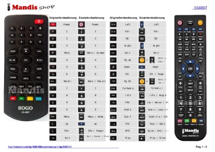 Ein Dokument ist enthalten, um die Verwendung der neuen Fernbedienung zu erleichtern, indem es die Tastenbelegung zeigt.