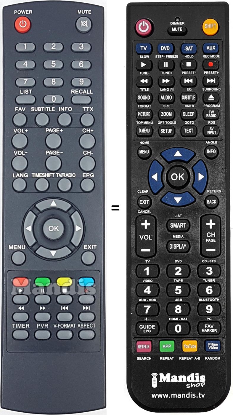 Es handelt sich jedoch nicht um eine Universalfernbedienung sondern um eine Fernbedienung die das Original ersetzt.