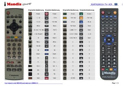 Ein Dokument ist enthalten, um die Verwendung der neuen Fernbedienung zu erleichtern, indem es die Tastenbelegung zeigt.