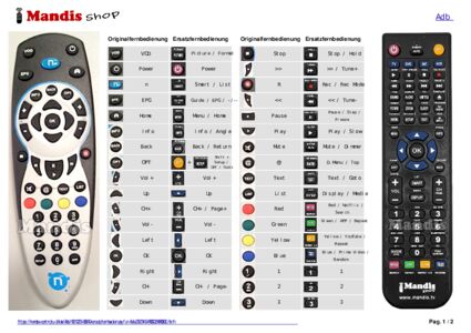 Ein Dokument ist enthalten, um die Verwendung der neuen Fernbedienung zu erleichtern, indem es die Tastenbelegung zeigt.