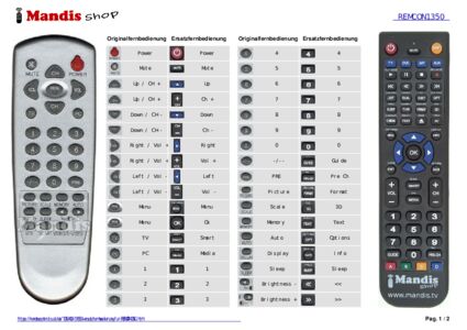 Ein Dokument ist enthalten, um die Verwendung der neuen Fernbedienung zu erleichtern, indem es die Tastenbelegung zeigt.