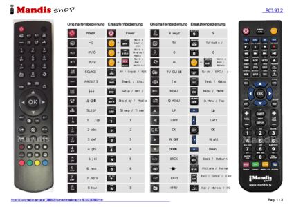 Ein Dokument ist enthalten, um die Verwendung der neuen Fernbedienung zu erleichtern, indem es die Tastenbelegung zeigt.