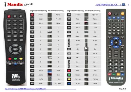 Ein Dokument ist enthalten, um die Verwendung der neuen Fernbedienung zu erleichtern, indem es die Tastenbelegung zeigt.