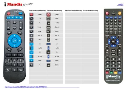 Diese Fernbedienung ersetzt die meisten Funktionen Ihres A95X (A95X-B7N). Es ist keine Universalfernbedienung, sondern eine Kopie mit den meisten Tasten und Funktionen Ihres Originals.