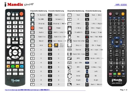 Ein Dokument ist enthalten, um die Verwendung der neuen Fernbedienung zu erleichtern, indem es die Tastenbelegung zeigt.