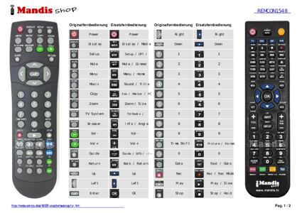 Ein Dokument ist enthalten, um die Verwendung der neuen Fernbedienung zu erleichtern, indem es die Tastenbelegung zeigt.