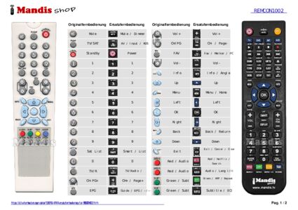 Ein Dokument ist enthalten, um die Verwendung der neuen Fernbedienung zu erleichtern, indem es die Tastenbelegung zeigt.