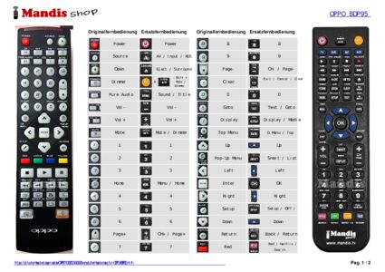 Home > Marken > Fernbedienungen OPPO > Fernbedienung für OPPO BDP95