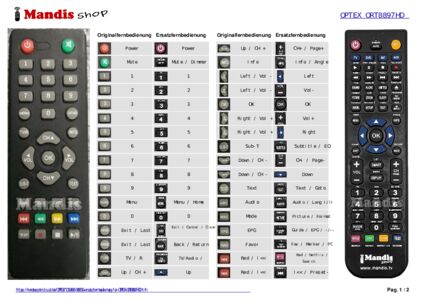 Diese Fernbedienung ersetzt Ihre ORT8897HD in vollem Umfang und bietet alle Funktionen des Originals.