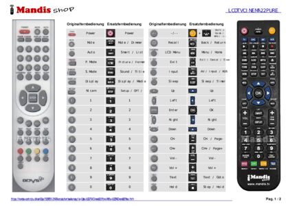 Ein Dokument ist enthalten, um die Verwendung der neuen Fernbedienung zu erleichtern, indem es die Tastenbelegung zeigt.