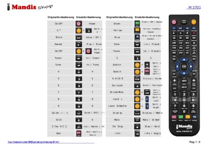 Ein Dokument ist enthalten, um die Verwendung der neuen Fernbedienung zu erleichtern, indem es die Tastenbelegung zeigt.
